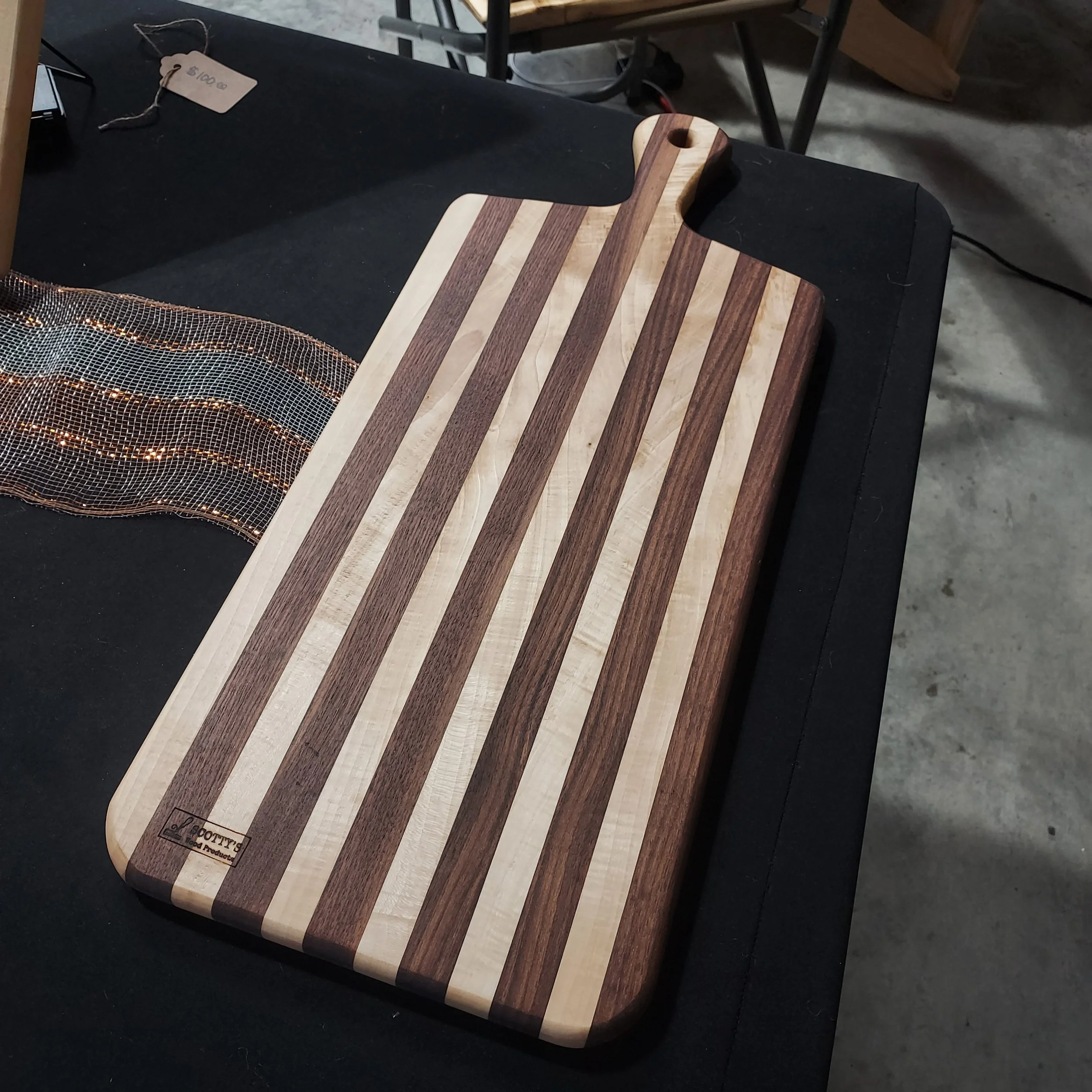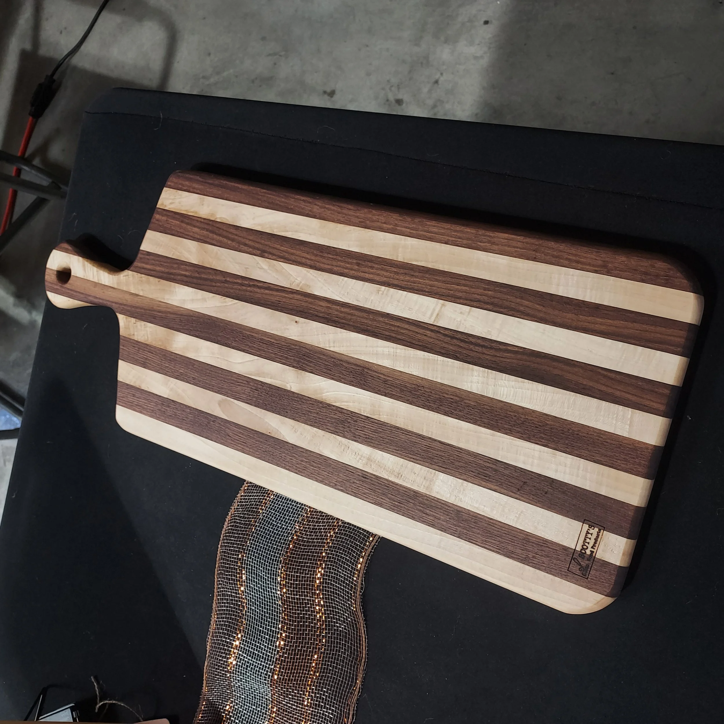 Elevate your kitchen with this stunning handcrafted cutting board made from premium maple, walnut, and mahogany hardwoods. Designed for both function and beauty, this board is perfect for meal prep, serving charcuterie, or gifting to the home chef in your life.